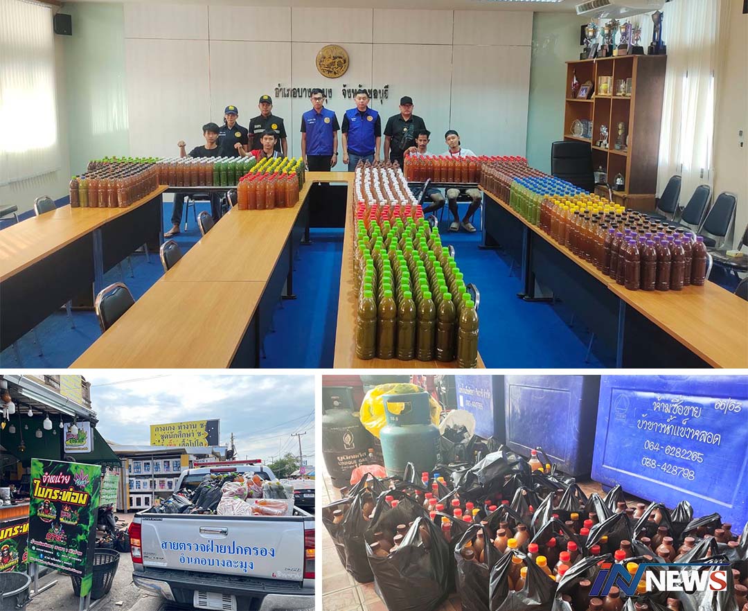 ฝ่ายปกครองบางละมุงลุยจับน้ำกระท่อม ยึดของกลางนับพันขวด