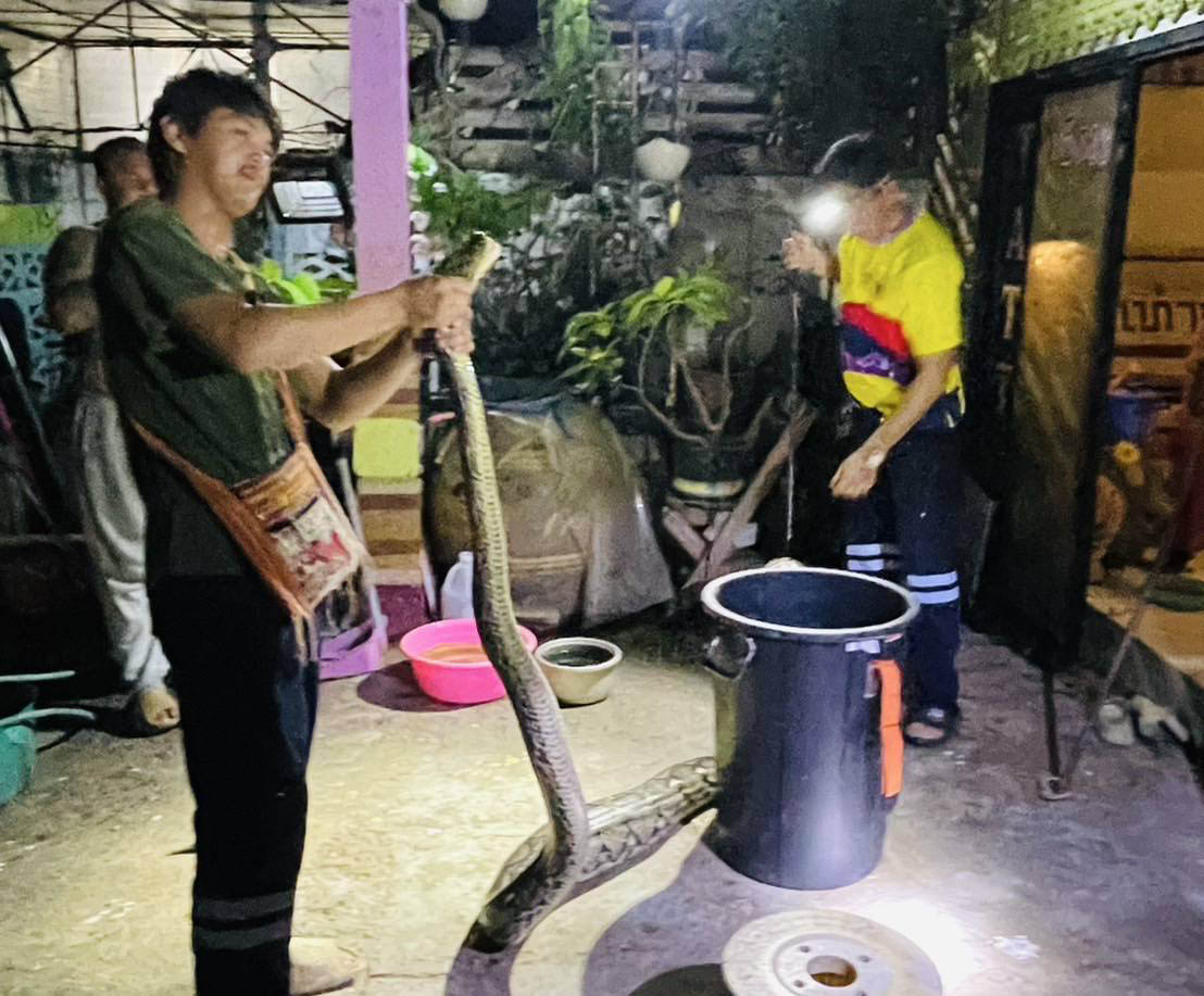 โคตรงูหลามหนีน้ำบุกกินแมวนักข่าวเก่า คอหวยไม่สนอันตรายแห่ตีเลขเด็ด