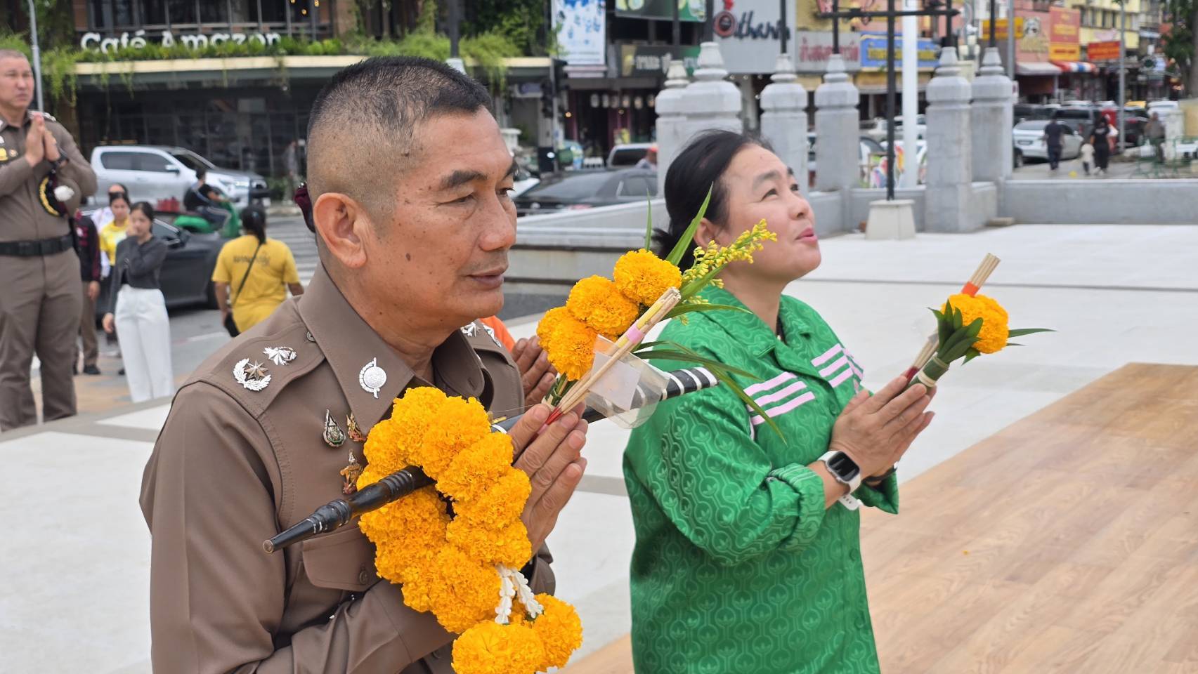 ผบก.โคราชคนใหม่พร้อมภริยาสักการะ ย่าโมหลังเข้ารับตำแหน่งถวายบวงสรวง