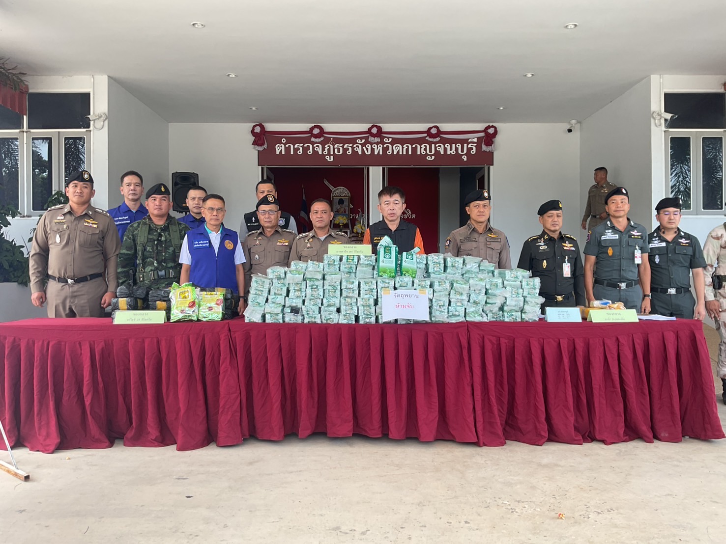 กาญจนบุรี-แถลงผลจับกุมเครือข่ายยาเสพติดรายใหญ่ กาญจนบุรี ยึดเคตามีน 201 กก. ไอซ์ 25 กก. และยาบ้า 20,000 เม็ด รวมมูลค่ากว...