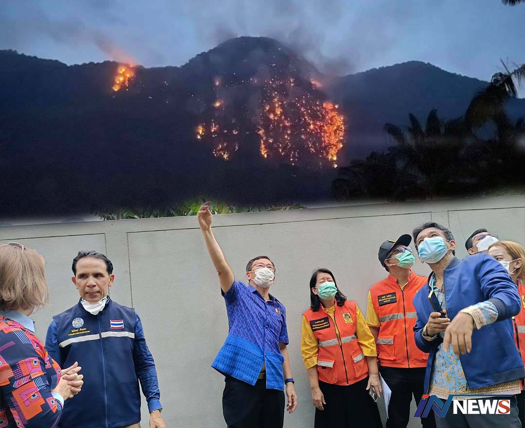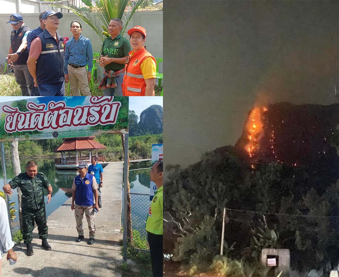 ผู้ว่าฯกระบี่เรียกระดมพลช่วยดับไฟป่า ลงรุกลามบนเข้าสูงในต.เขาทอง