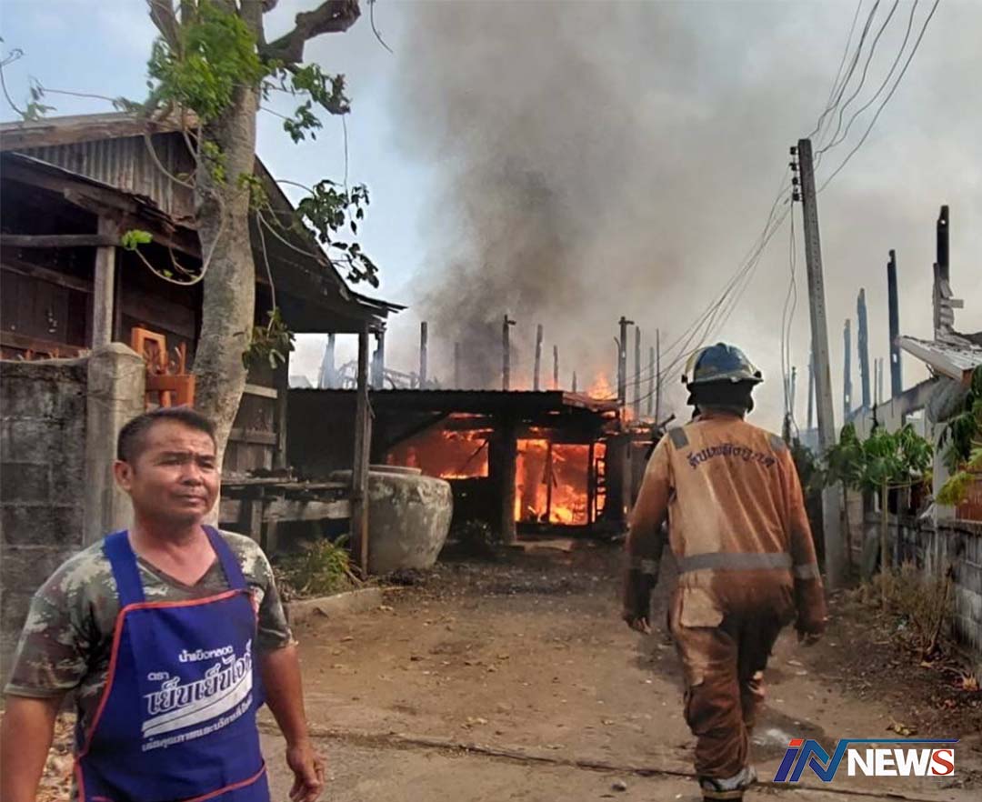 ไฟไม้บ้านชาวลำปลายมาศวอด4หลังรวด ยาย83ปียฝ่ากองเพลิงเอาเงิน2แสน