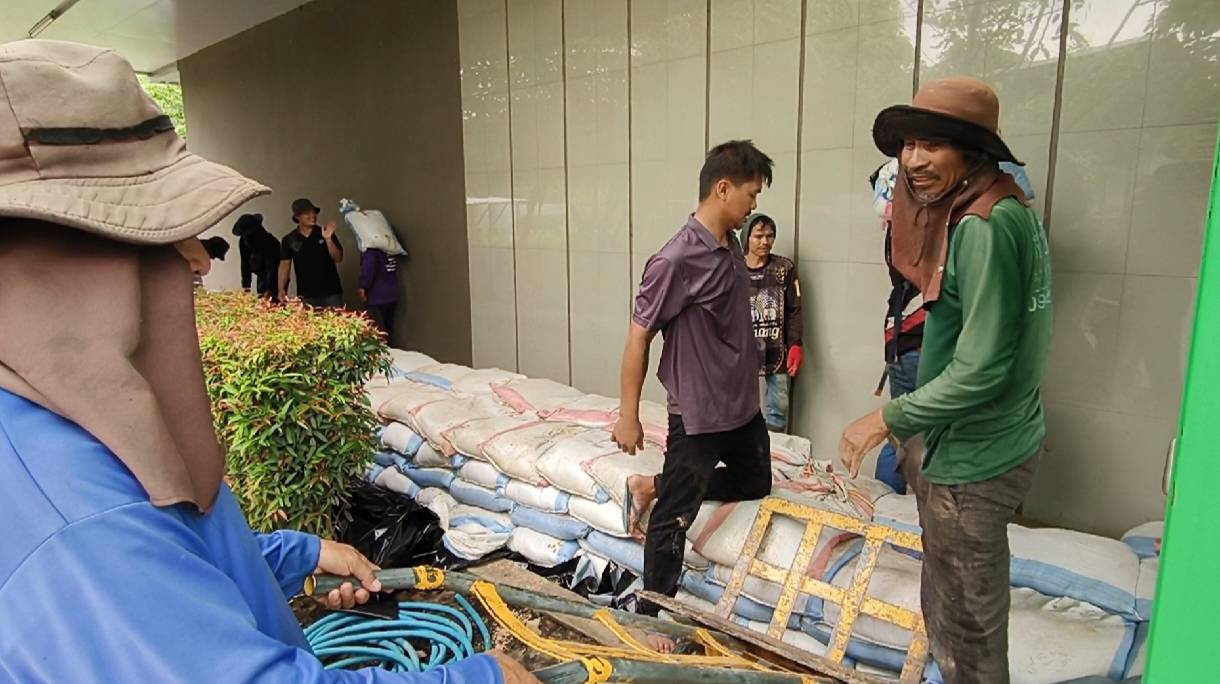 ชาวกันทรารมย์ผวาน้ำเริ่มขึ้นสูงแห่เสริม กระสอบทรายทำแนวกั้นกันน้ำท่วมเมือง