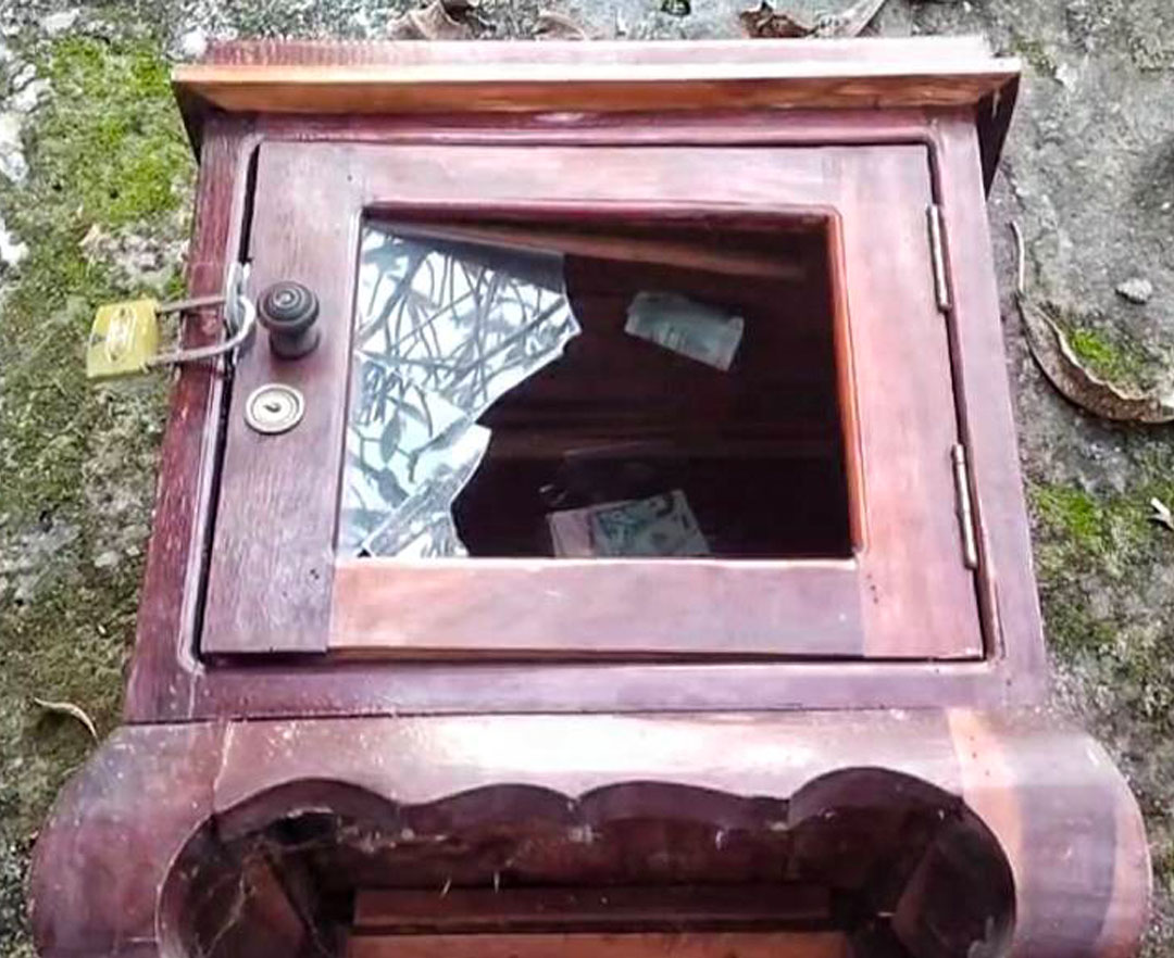 โจรบาปลักทุบตู้บริจาคเงินวัดวังกระโจม ควักไปได้กว่าหมื่นเหลือทิ้งไว้แค่500