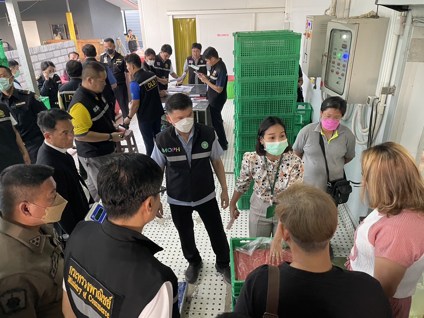 นครปฐม-หน่วยงานทุกภาคส่วนในจังหวัดนครปฐม บูรณาการลงพื้นที่ตรวจสอบสถานที่จำหน่ายเนื้อสุกร – ห้องเย็น และสถานที่จัดเ...
