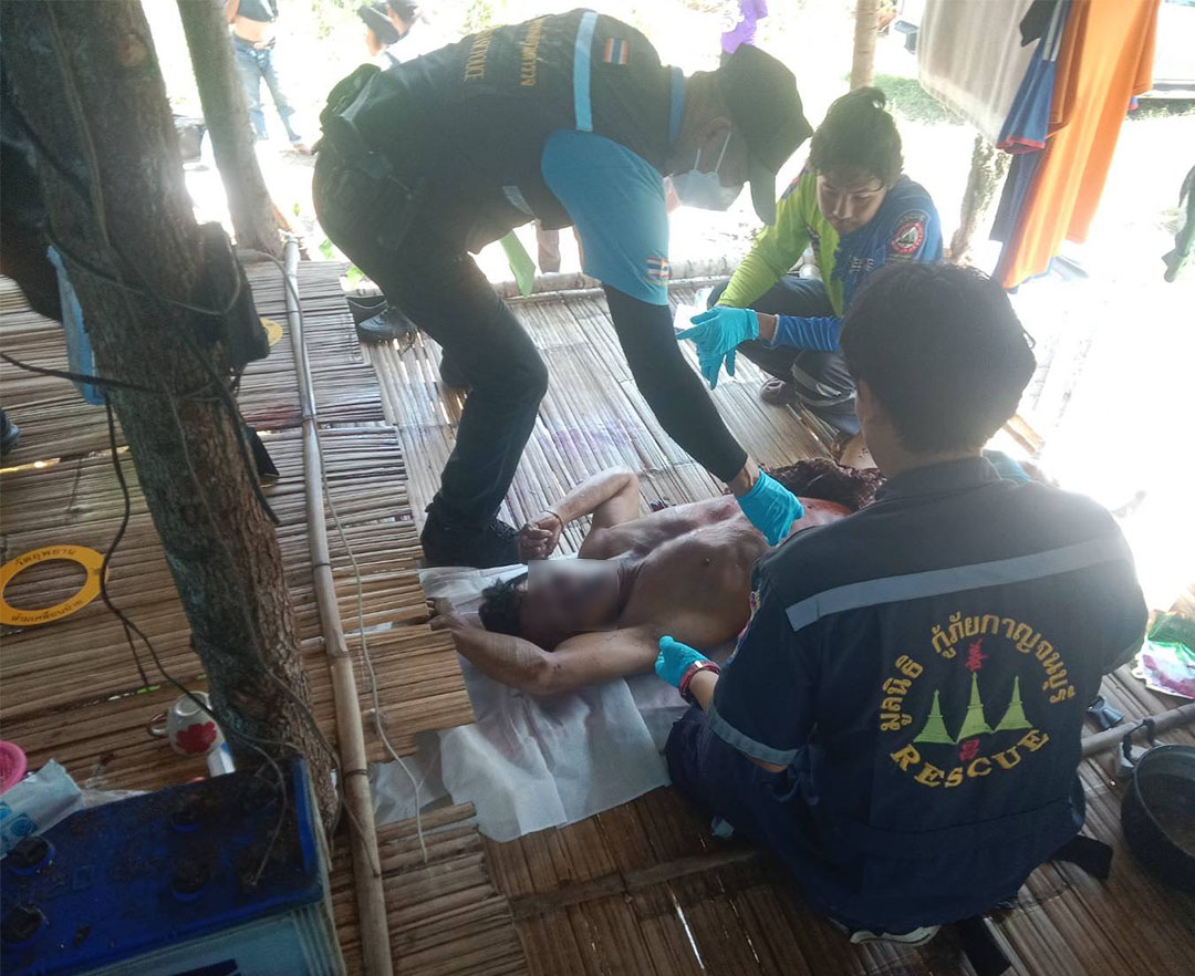 เขยหนุ่มคลั่งเมียหนีชักดาบไล่ฟันแม่ยาย ระบายแค้นโชคดีหลานเปิดประตูบังทัน