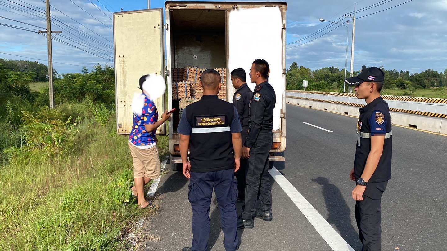 มุกดาหาร - ด่านกักกันสัตว์มุกดาหาร สนธิกำลังหน่วยความมั่นคงในพื้นที่ ตรวจยึดรถกระบะตู้ทึบบรรทุกไข่ไก่จำนวน 18,000 ฟอง ลั...