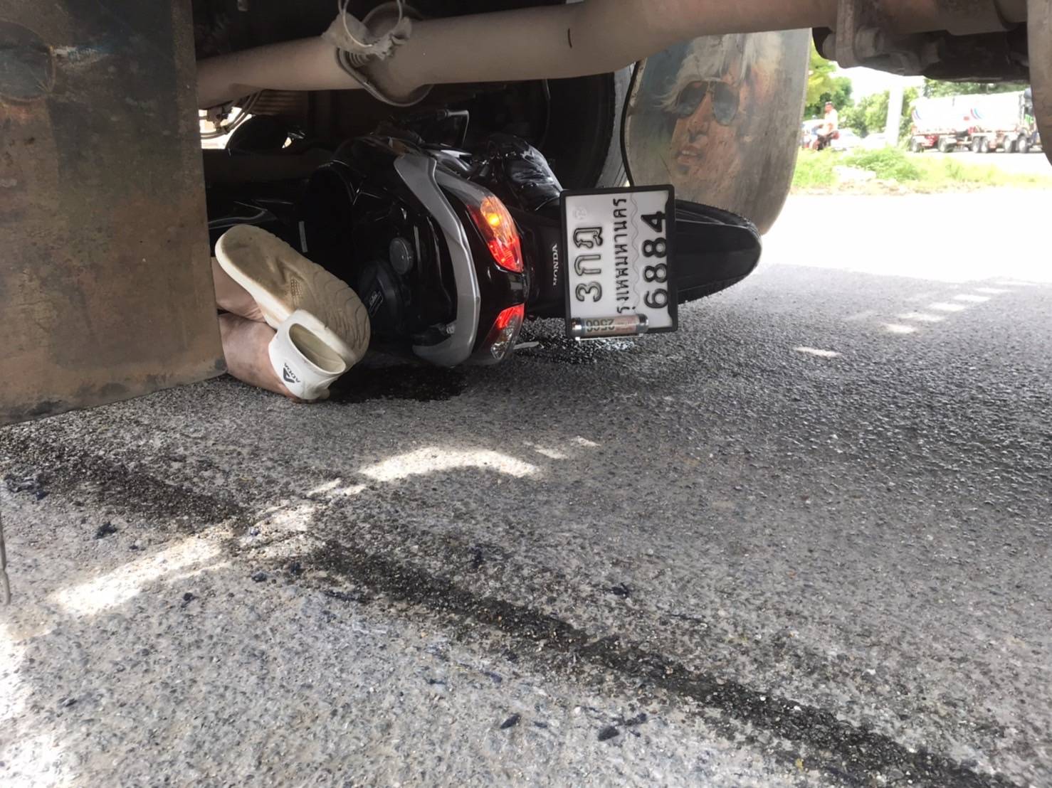 2 พ่อลูกเมืองกาญจน์เคราะห์ร้ายขี่รถยย. ไปจ่ายค่าไฟถูกรถพ่วง18ล้อทับเละทั้งคู่