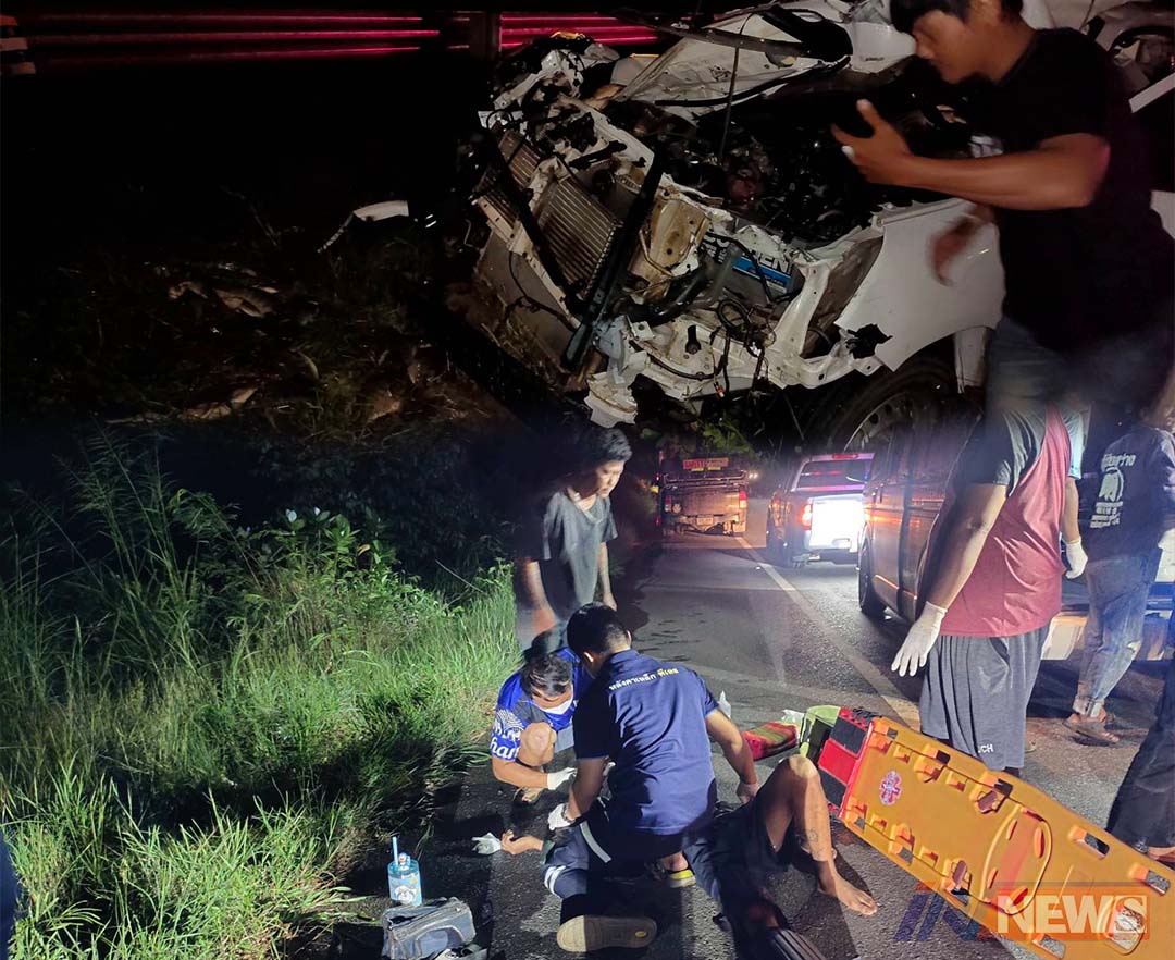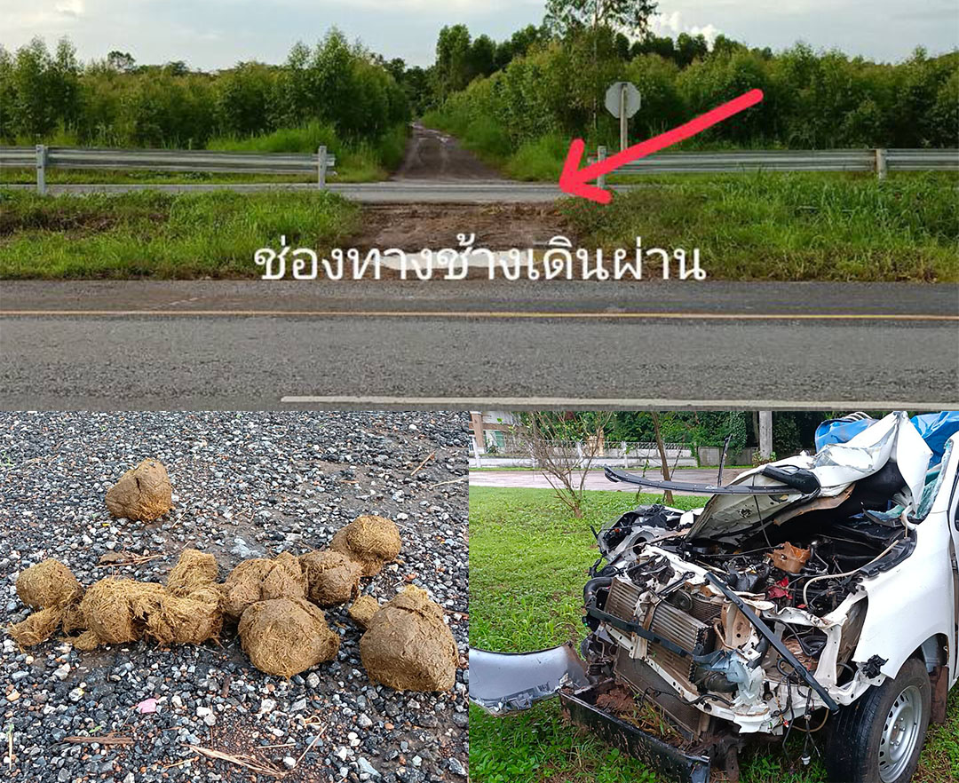 รถขนปลานิลชนช้างป่าคนเจ็บ3ช้างเตลิด รถพังยับบนเส้นทางพนมฯ-สระแก้ว