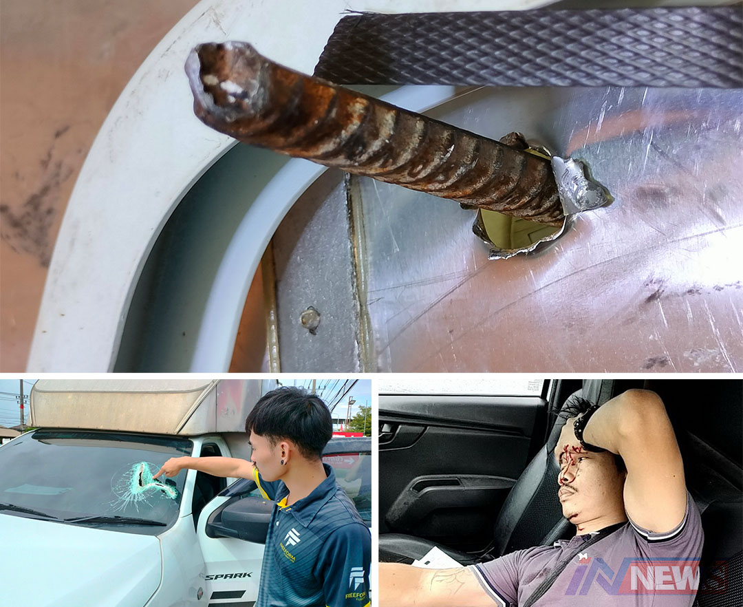 ฉะเชิงเทรา-เหล็กเส้นปริศนา พุ่งทะยานปักกระจกหน้ารถยนต์กระบะ ทะลวงผ่านความหนาสิ่งกีดขวางมากถึง 4 ชั้น ทั้งเหล็กสแตนเลส แผ...