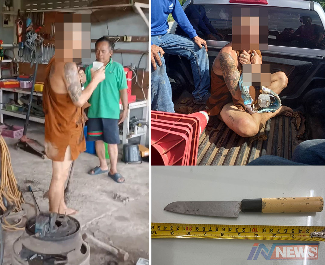 หนองบัวลำภู - พระคลุ้มคลั่งชิงทรัพย์รถจักรยานยนต์ใช้อาวุธมีดแทงเจ้าของรถเจอปั้มน้ำมันเติมเสร็จแทงเจ้าของปั้มเจ็บอีก 1