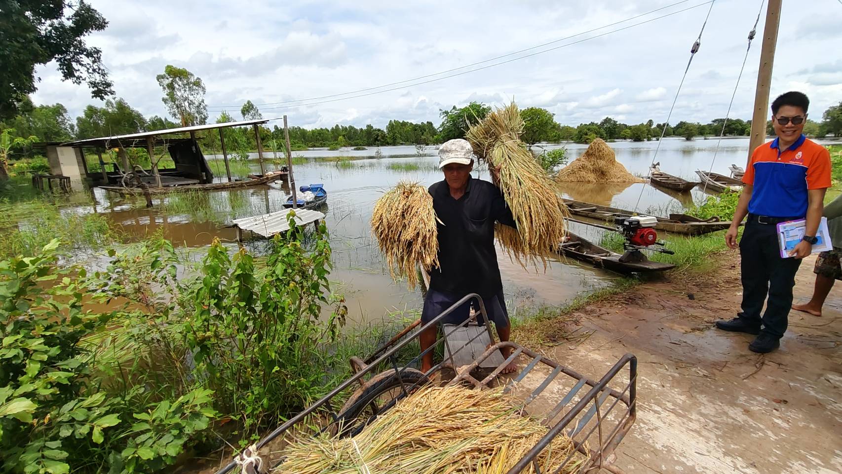 น้ำชีทะลักท่วมนาข้าวชาวนากันทรารมย์ กว่า1พันไร่จมน้ำต่างเร่งเกี่ยวข้าวหนีน้ำ