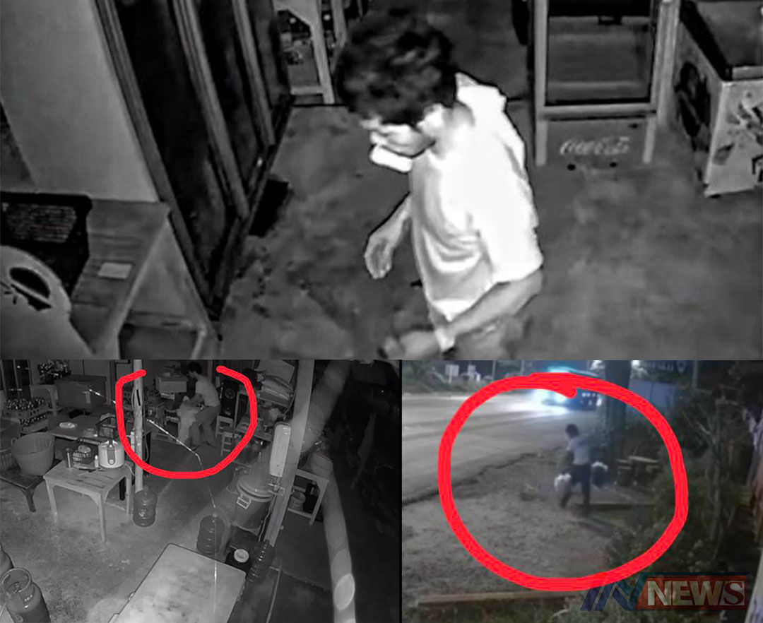 วงจรปิดจับภาพโจรย่องเข้ามาขโมยของ ในร้านก๋วยเตี๋ยวเรือได้ทั้งของกินและเงิน