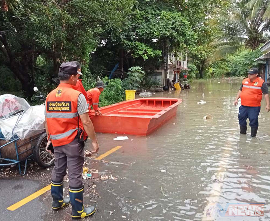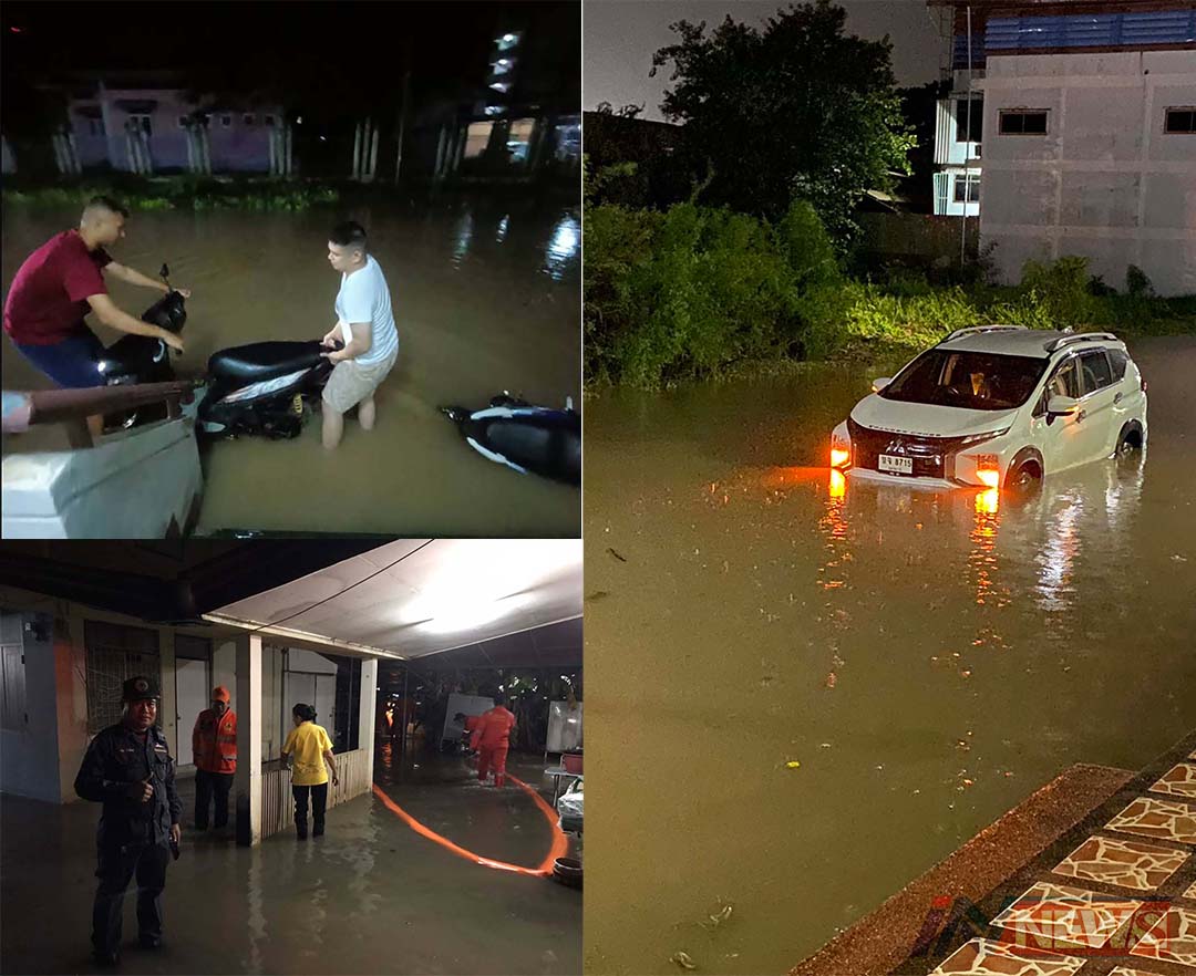 มุกดาหารฝนถล่มน้ำท่วมถนนหลายสาย ทำให้ปชช.สัญจรไปมาไม่แสนลำบาก