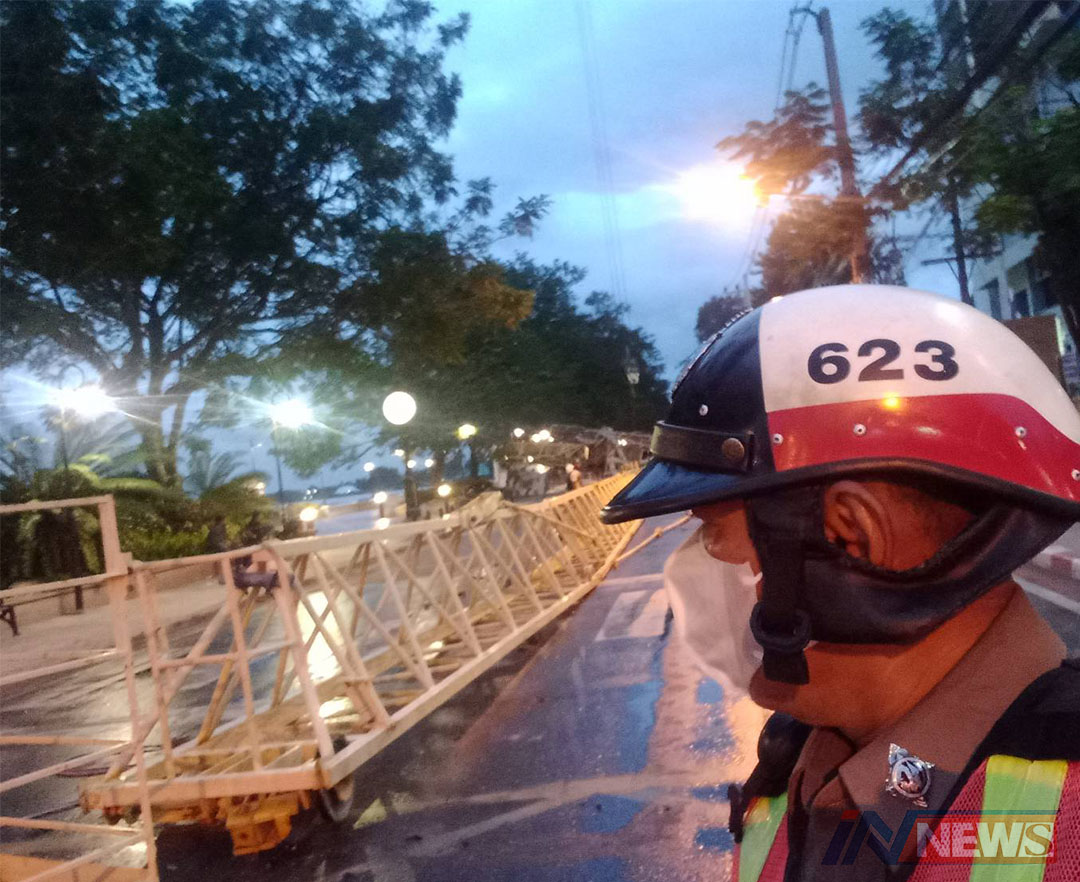 เครนก่อสร้างรพ.พุทธโสธรล้มทำจราจร เมืองแปดริ้วติดหนึบอัมพาตทุกเส้นทาง