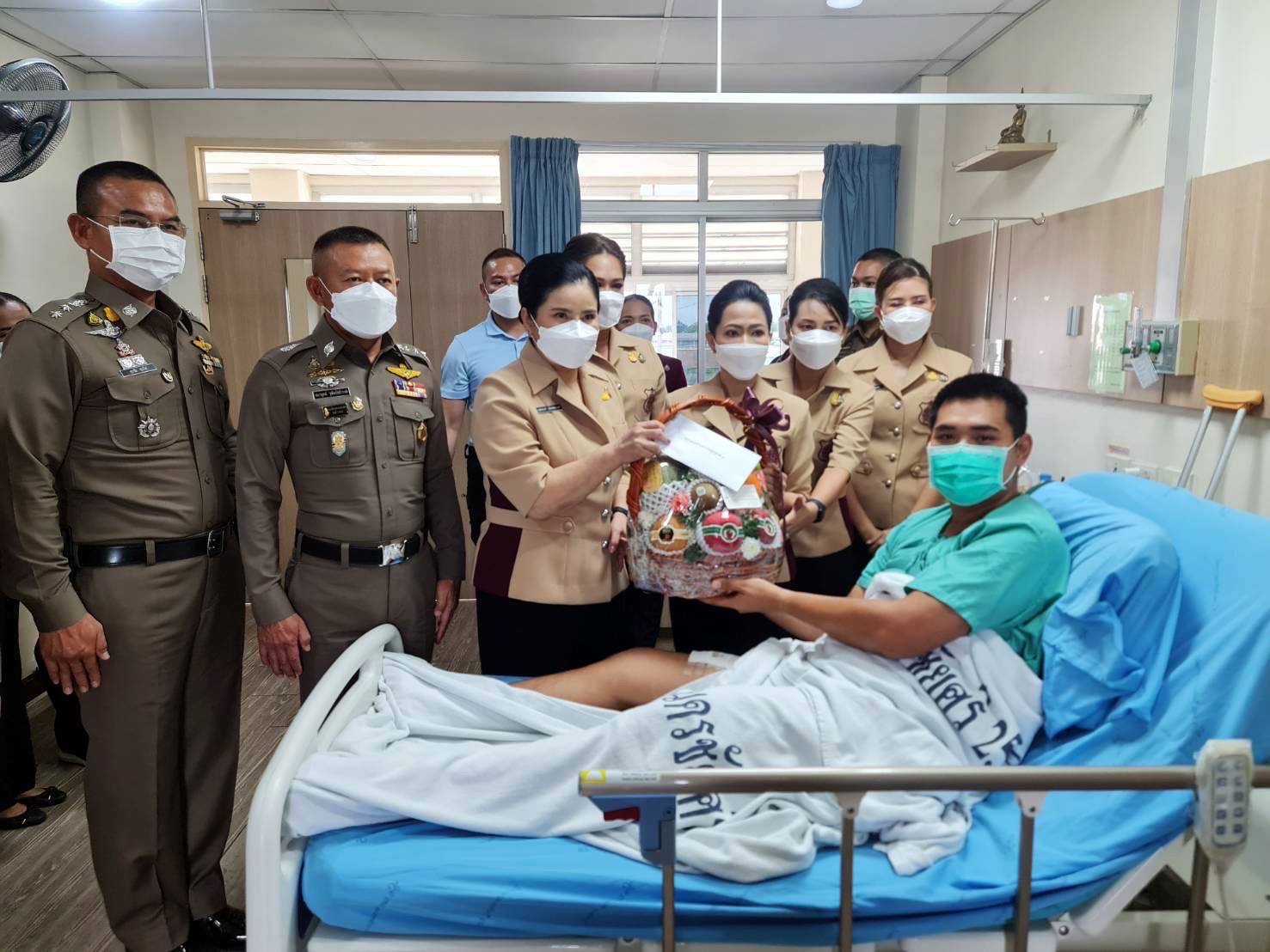 ผบช.ภ.7พาแม่บ้านรุดเยี่ยมเจ็บตร.2นาย มอบเงินปลอบขวัญคนละ5พันบาท