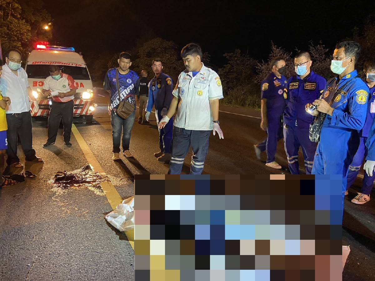 กาญจนบุรี-หนุ่มเมืองปทุมธานี โชคร้ายซิ่งฮอนด้า PCX ชนราวเหล็กเครื่องกั้นเกาะกลางถนนเสียชีวิตอนาถที่กาญจน์