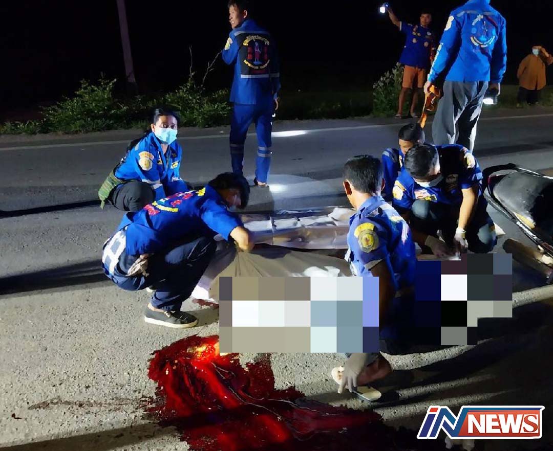 กาญจนบุรี-โชคร้าย ! หนุ่มก่อสร้างเลิกงานขี่รถจยย.จะกลับบ้าน ระหว่างทางชนกับรถจักรยาน 2 ล้อปั่นจนล้มคว่ำ รถพ่วง 18 ล้อทับ...
