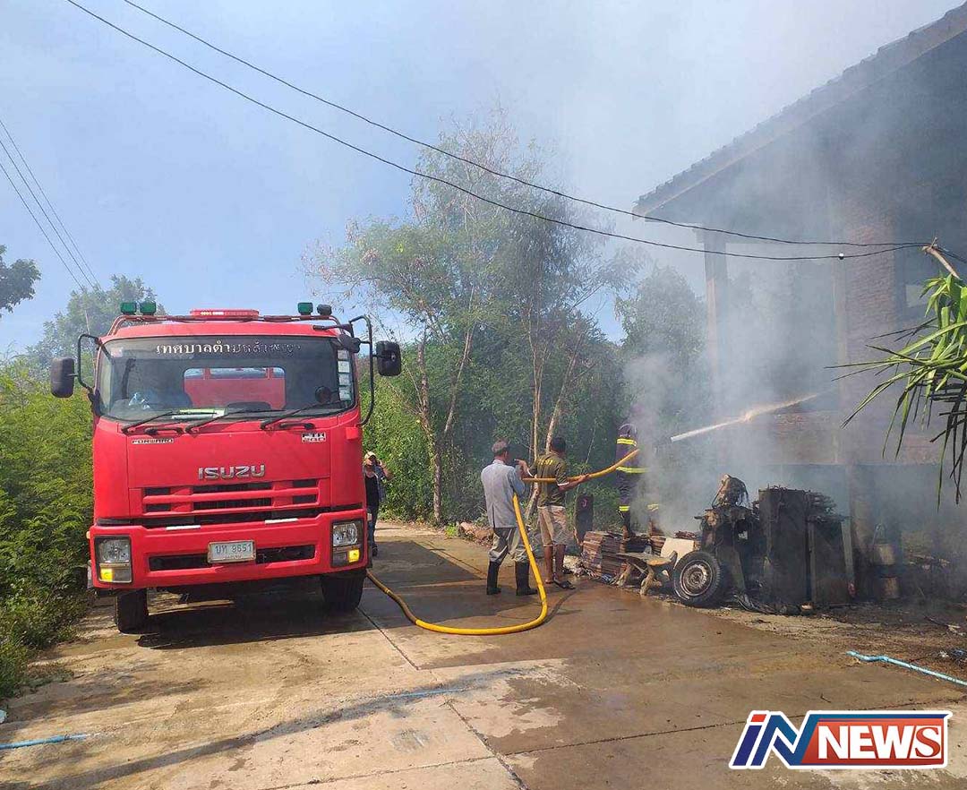 นครปฐม-ช่างเครื่องหนังเสียบปลั๊กสามตาต่อเครื่องใช้ไฟฟ้าทิ้งไว้ก่อนออกไปทำงาน โดยมีตา ยาย เห็นไฟลุกมีควันขึ้น แจ้งคนมาช่ว...