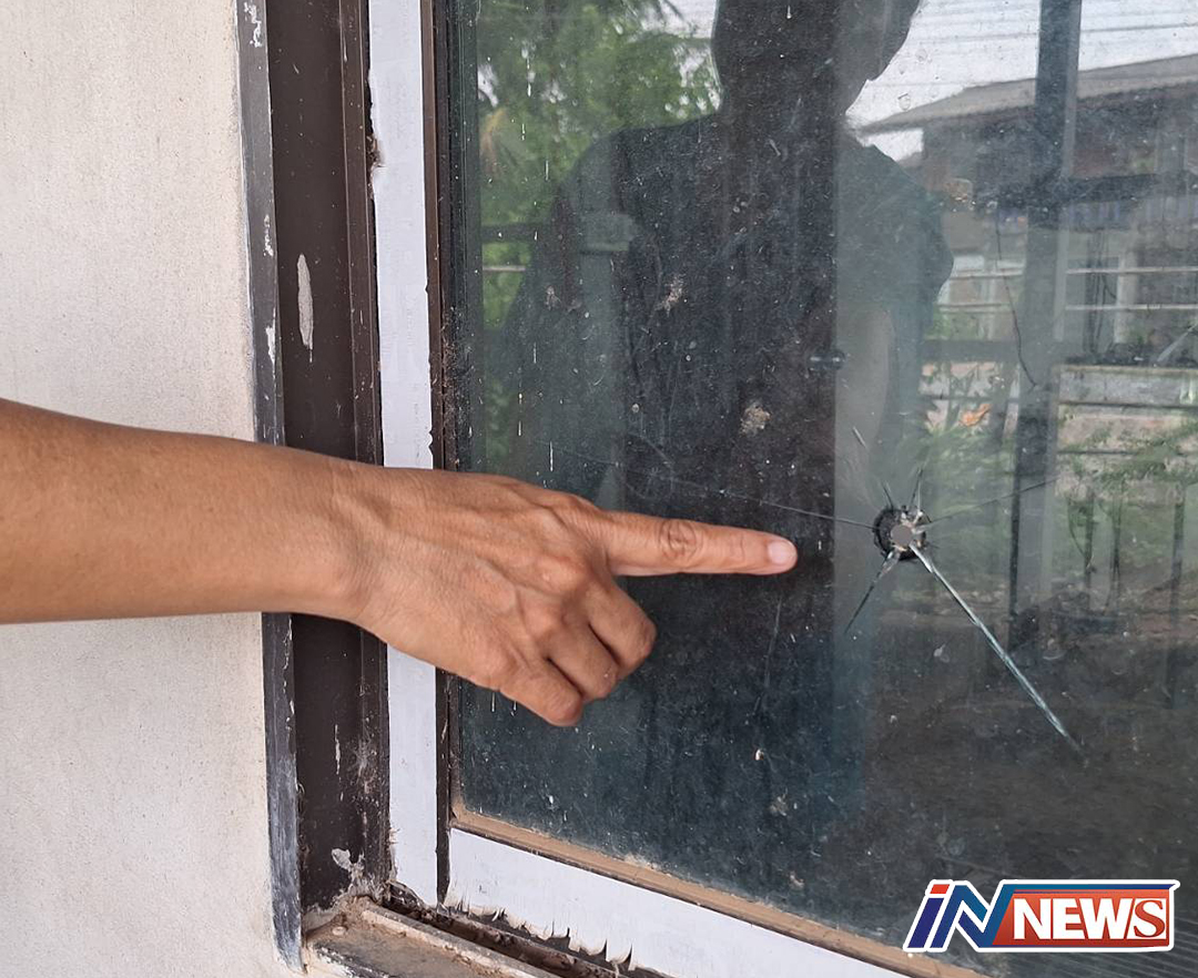 กระสุนปริศนาเจาะกระจกหน้าต่างโชดดีไม่ทะลุโดนเด็ก