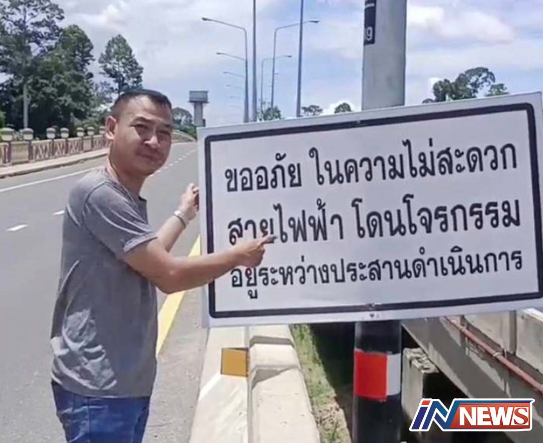 ติดป้ายขออภัยชาวบ้านสายไฟฟ้าโดนโจรกรรมทำไฟดับทั้งแถบ