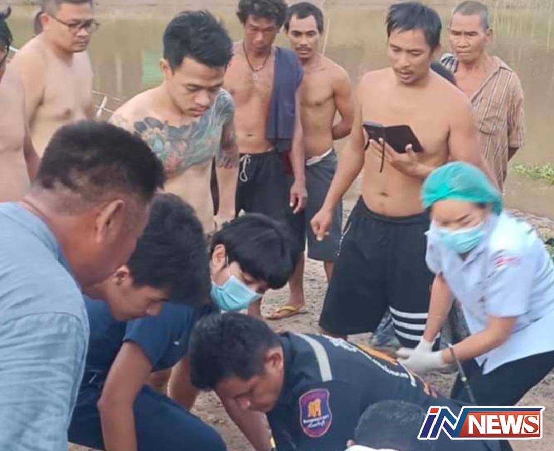 หนุ่มใหญ่จิตเวชลอยคอเปลือยกายในคันคลองชลประทาน