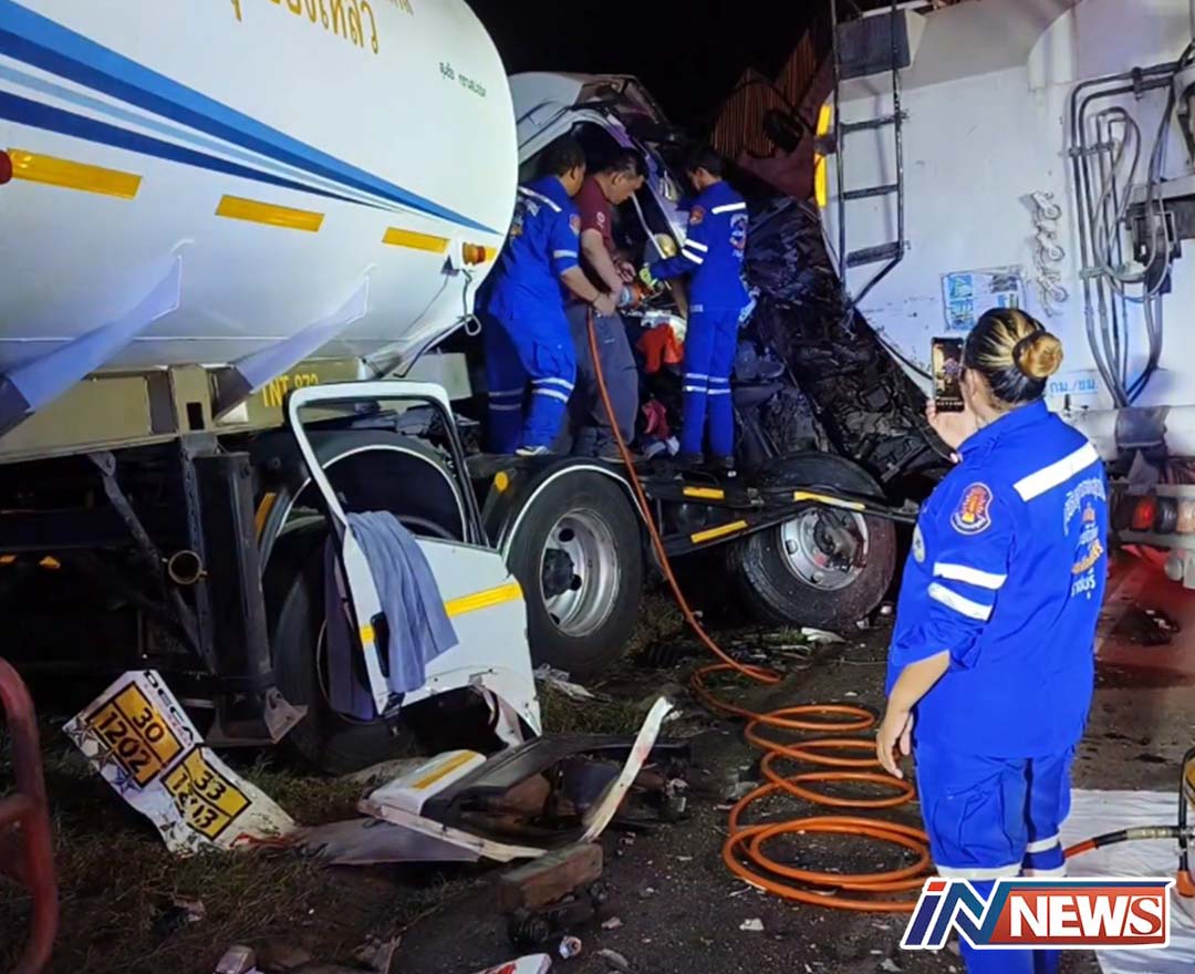พ่วง18ล้อหลับในเสยท้ายรถบรรทุกสาหัส2ราย