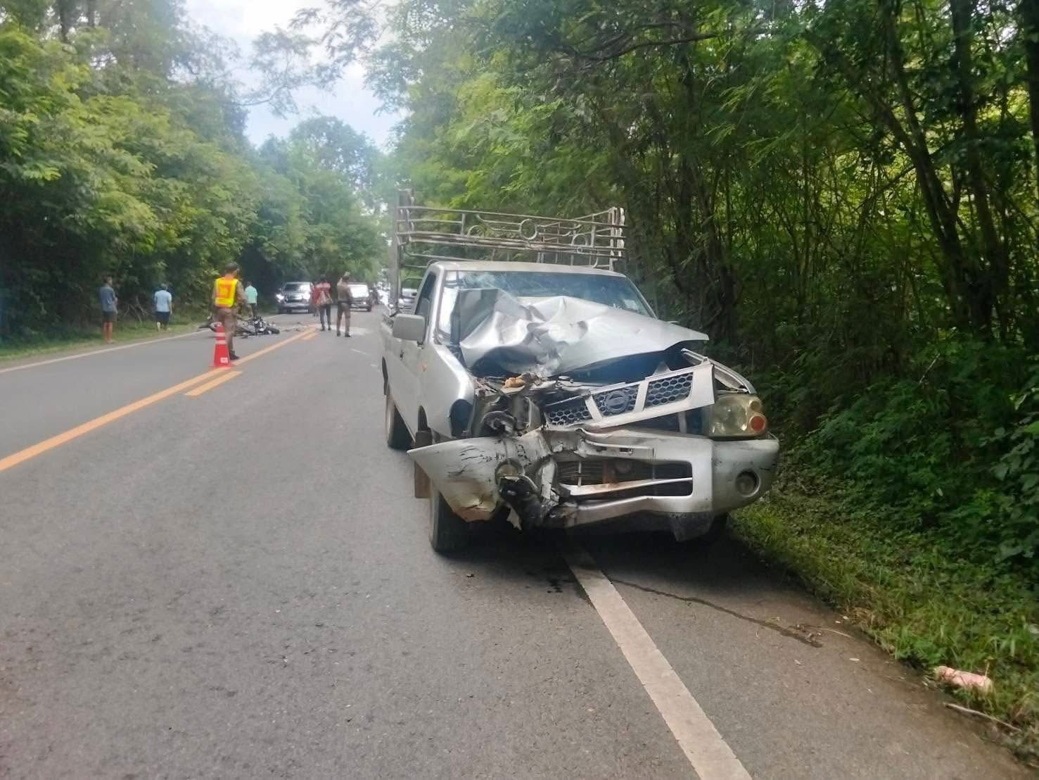 หนุ่มขี่จยย.ซิ่งพุ่งชนท้ายรถกระบะเละ! ดับคาถนนหน้าวัดท่าเรือ