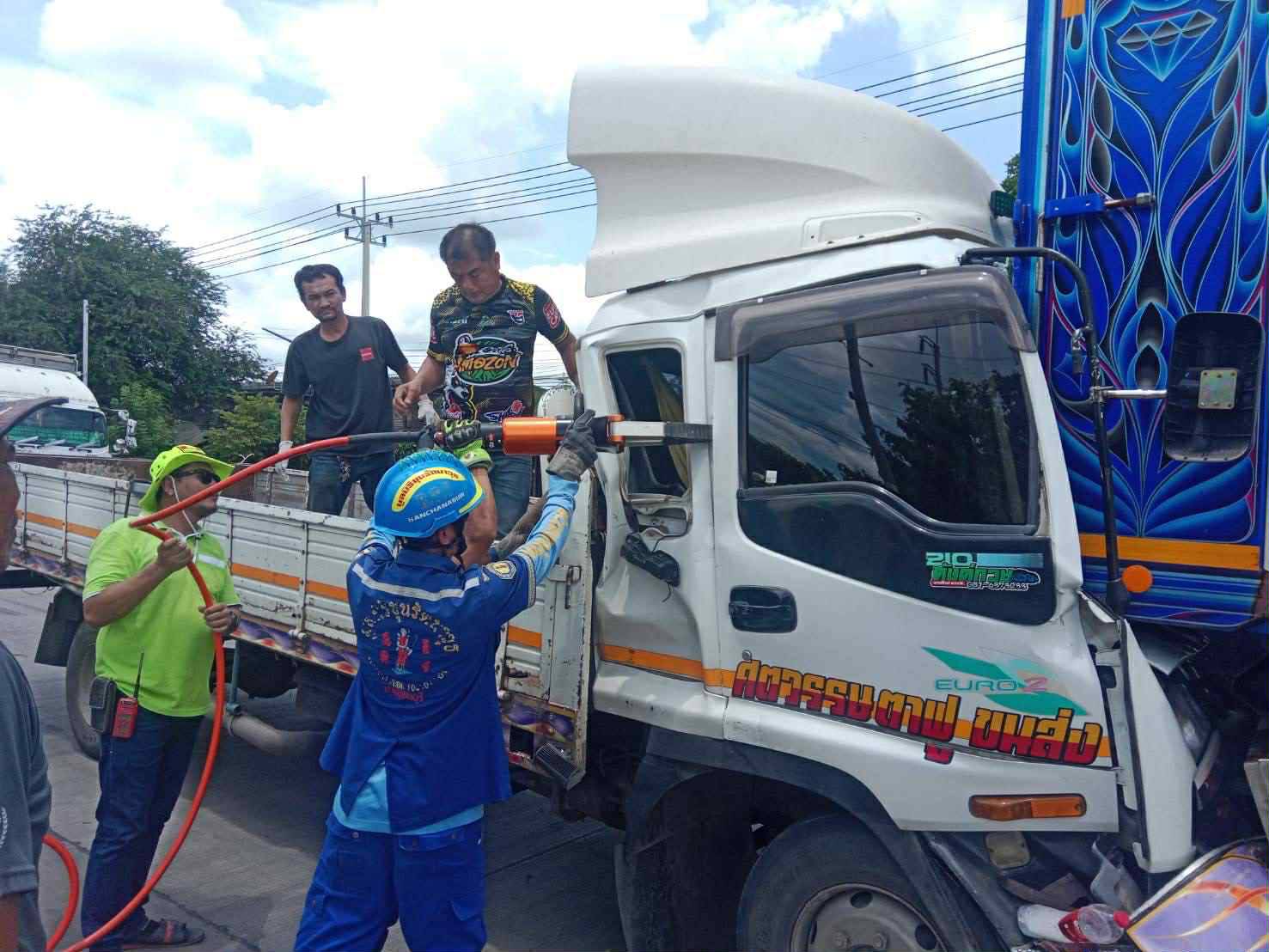 ชนสนั่น!รถบรรทุก6ล้อปะทะ18ล้อกลาง สัญญาณไฟดอนโพรงเจ็บ1ราย