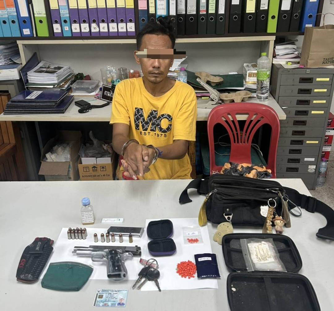 ตร.เมืองพังงาจับหนุ่มกระบี่พร้อมยาบ้า 157เม็ดและอาวุธปืนคาจุดตรวจ