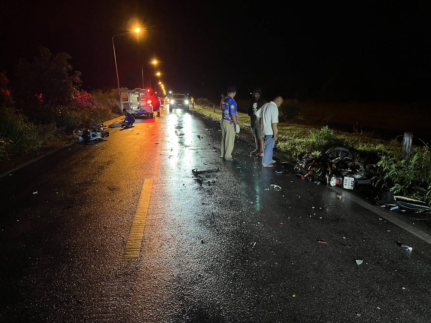 ชนสนั่นคันคลองแสนตอ!จยย.ชนกันเอง หนุ่มวัยรุ่นดับสลด2ศพหน้าโรงงานเต้าหู้
