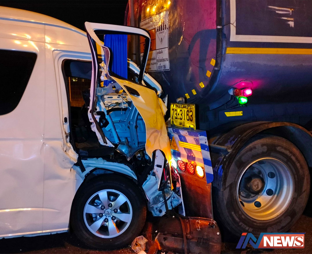 ฉะเชิงเทรา-ระทึกช่วยสองสามีภรรยาขับรถตู้เสยท้ายรถพ่วงบรรทุกน้ำมันบนมอเตอร์เวย์ สาย 7 กรุงเทพฯ-พัทยา ที่แท้แค่ของเหลวจากย...