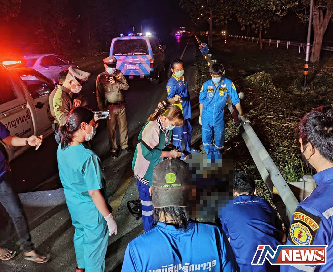 ปราจีนบุรี-ระวังภัย หนุ่มโรงงานซิ่งมินิไบค์ชนแท่งแบริเออร์ระหว่างไปเข้ากะดึก ถูกรถใหญ่เหยียบซ้ำร่างเละ