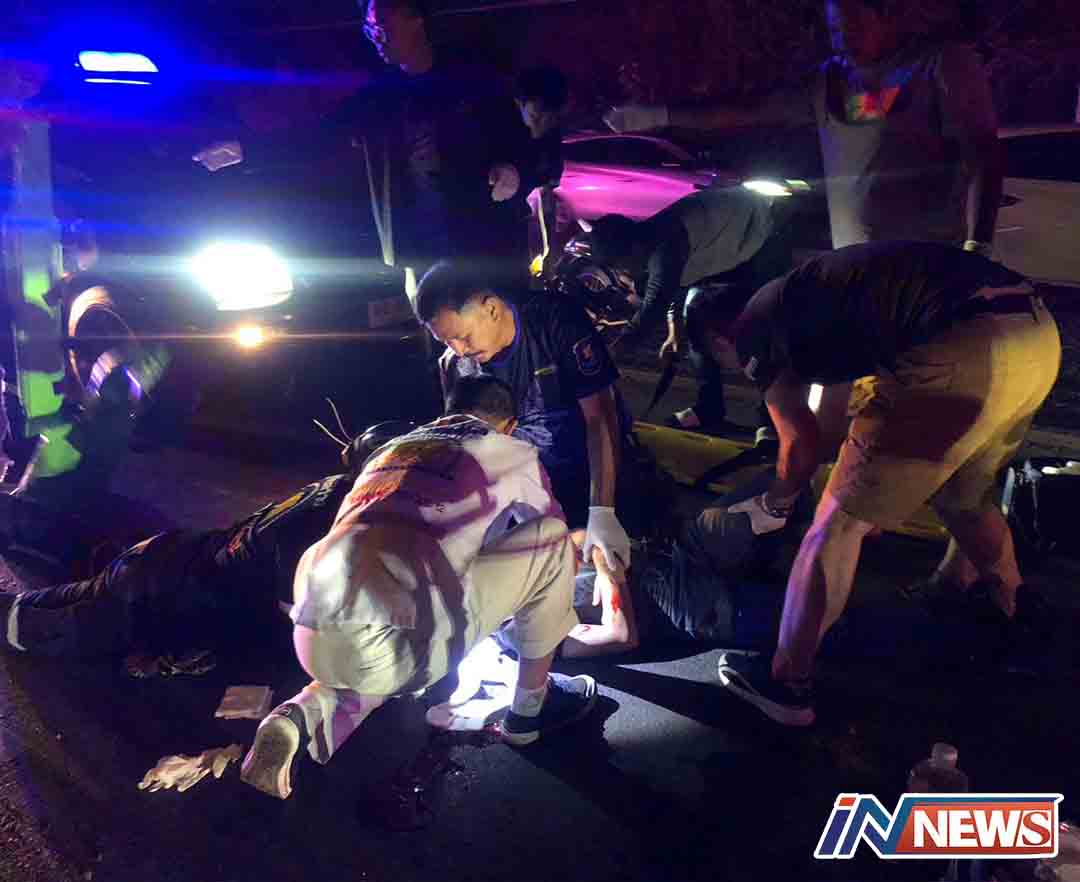 สาวทอมขี่จยย.พุ่งชนแบริเออร์หน้าฟาดถนนบาดเจ็บสาหัส