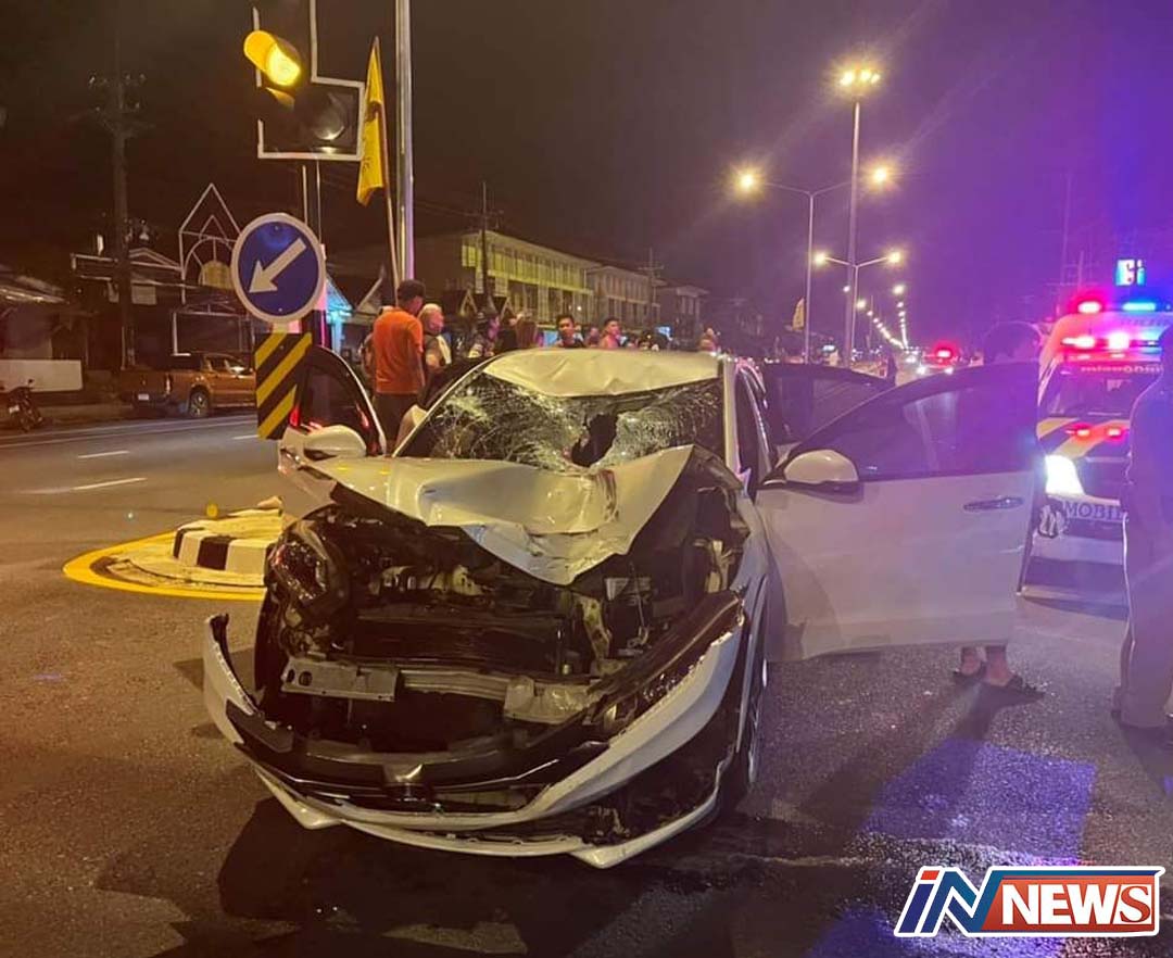 ต่างชาติข้ามถนนเพชรเกษม ตำคึกคัก อ.ตะกั่วป่า ถูกรถเก๋งชนร่างกระเด็นดับ