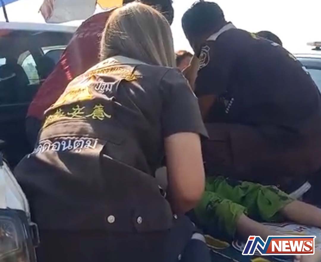 รถกระบะเฉี่ยวชนคนขับรถสามล้อตุ๊กที่ตกลงมาจากรถเหยียบหัวตายคาที่