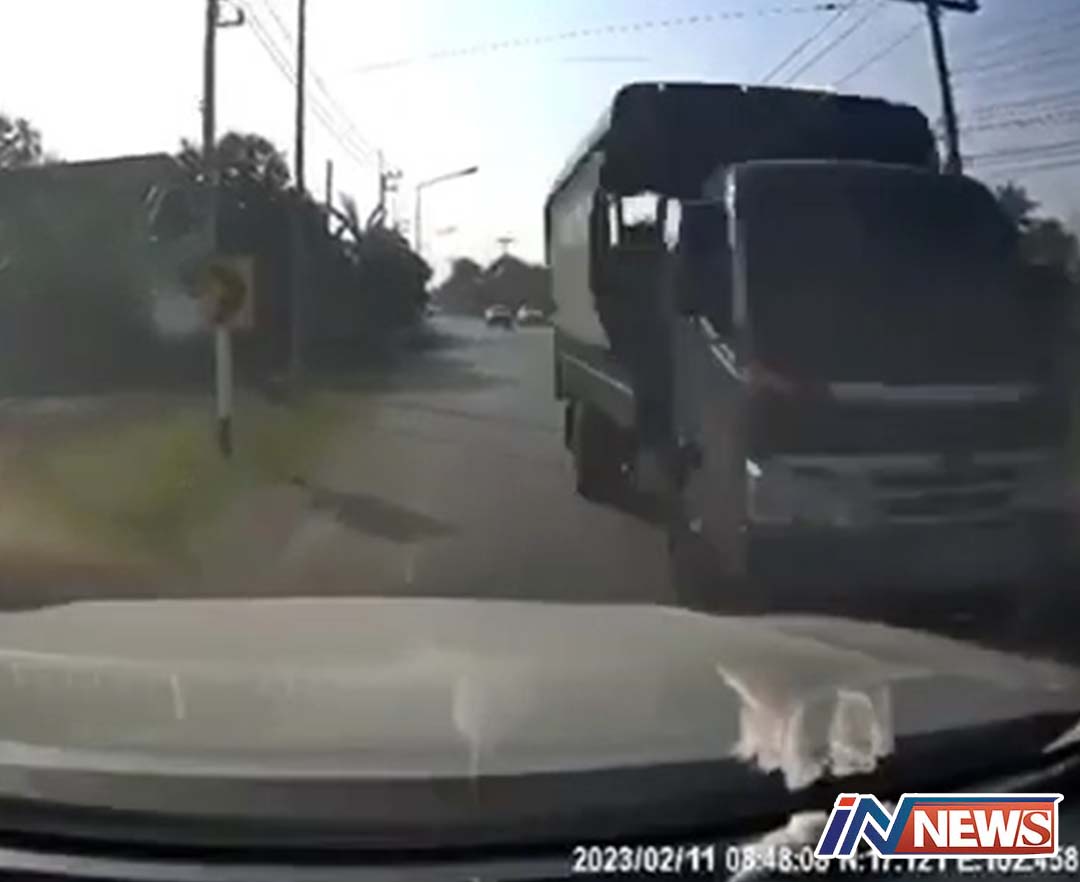 กล้องวงจรปิดยักษ์ใหญ่18ล้อฝ่าไฟแดงขนเก๋งกลางแยก