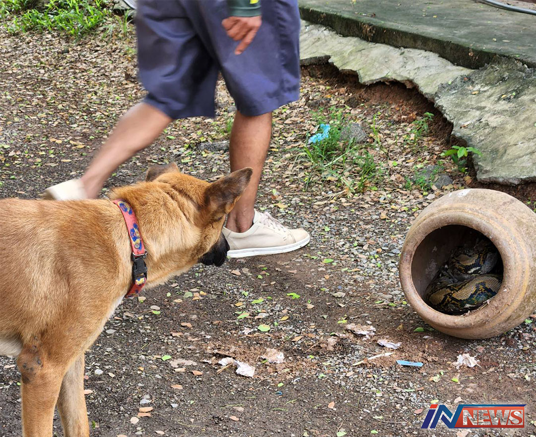 จับงูหลามยาว3เมตรกินไก่ชนเงินหมื่น พ่อพันธ์-แม่พันธุ์คาเล้านำใส่โอ่งรอกู้ภัย