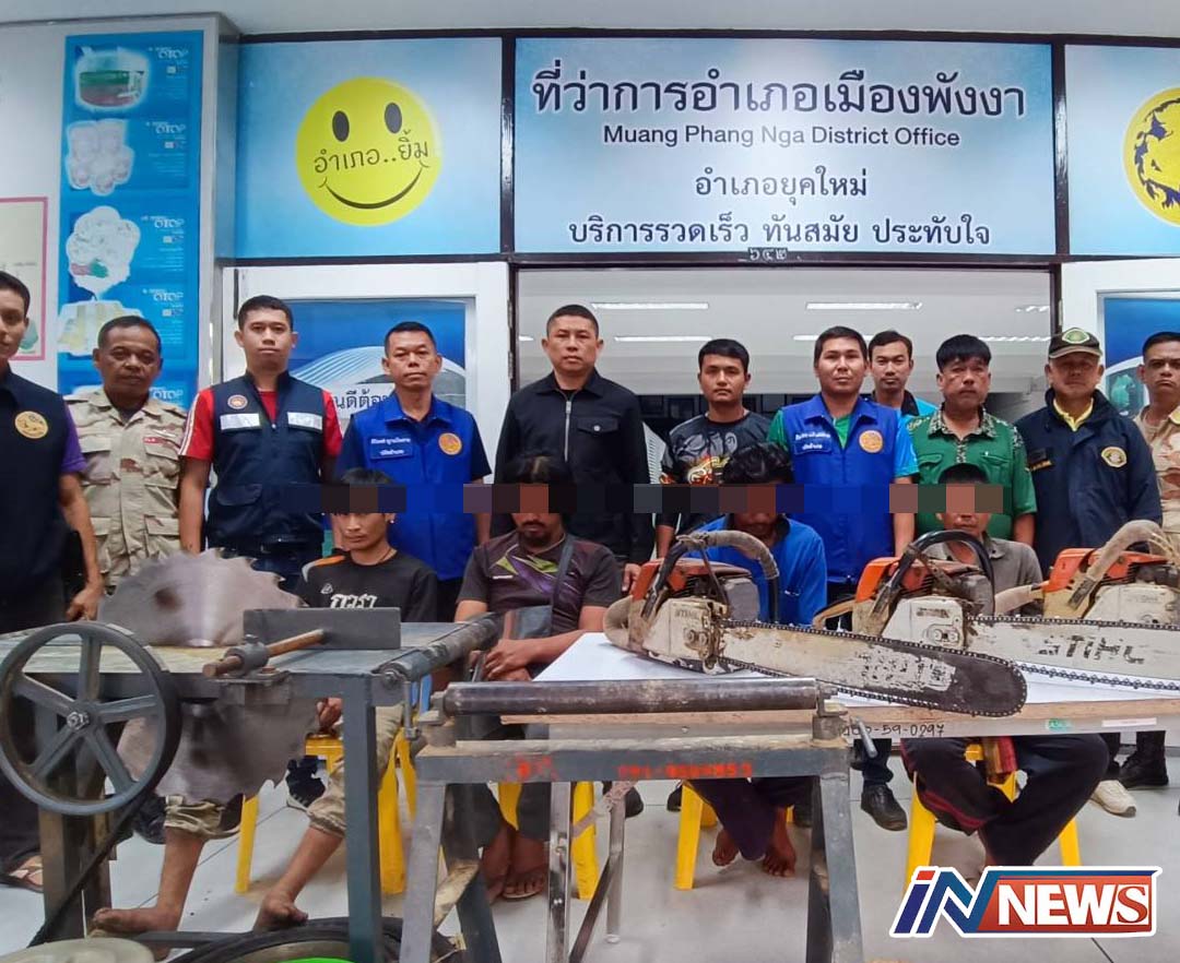 พังงา-ฝ่ายปกครองสนธิกำลังหลายหน่วยงานบุกเข้าจับกุมแก๊งมอดไม้กำลังแปรรูปไม้ป่ากลางดึก ที่ตำบลป่ากอ