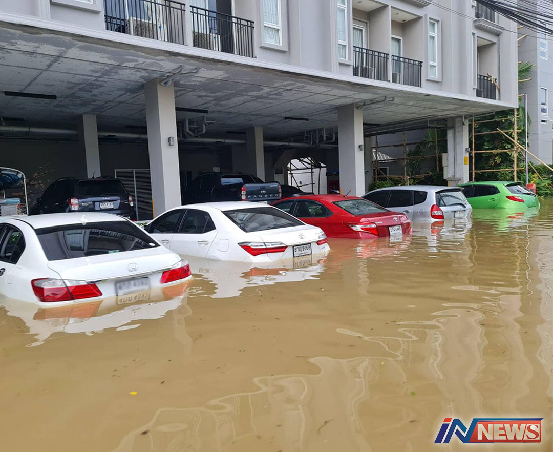 พิษฝนถล่มพื้นที่ถลาง-ภูเก็ตทำจมบาดาล เบื้องต้นรถยนต์40คัน/จยย.20คันเสียหาย