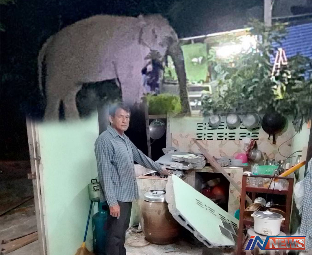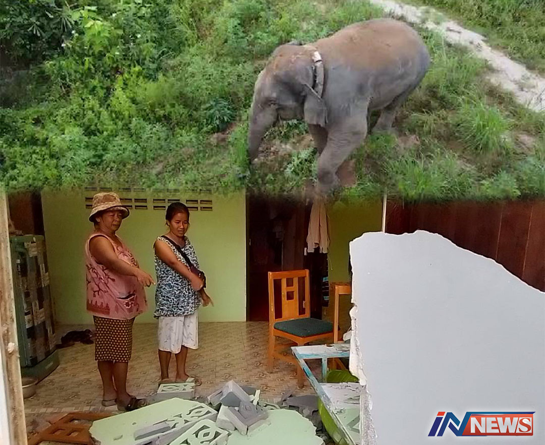 สีดอละมุดช้างป่าอุทยานทับลานบุกบ้าน หลังเดิมรอบ2ปล้นข้าวสาร-ปลาร้าไปกิน