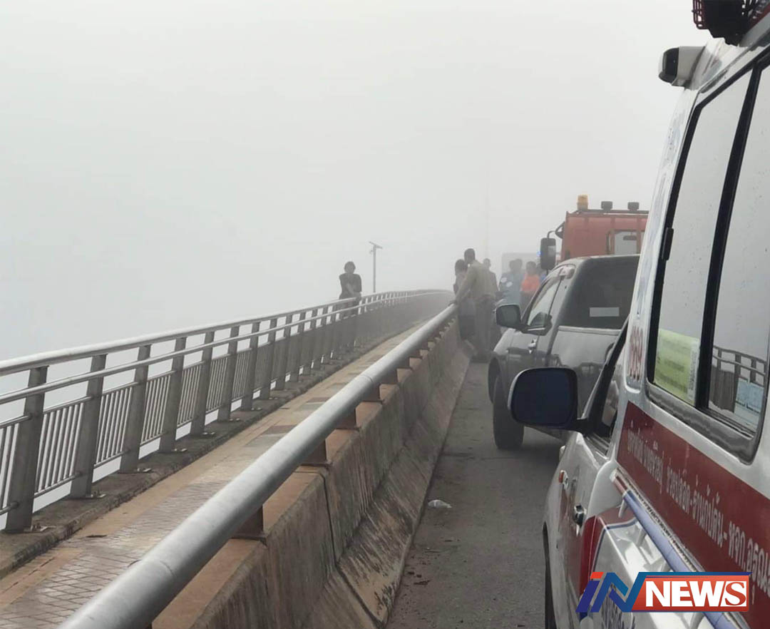 กู้ภัยร่วมใจข้ามโขงช่วยตัดถ่าง18ล้อพ่วงชนท้าย10ล้อคนขับเสียชีวิต