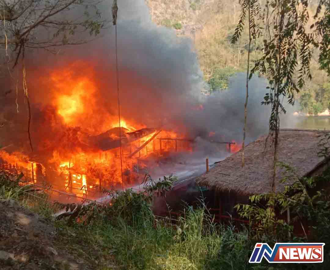 เพลิงไหม้แพพักรีสอร์ท16หลังริมแม่น้ำแควน้อยชื่อดัง