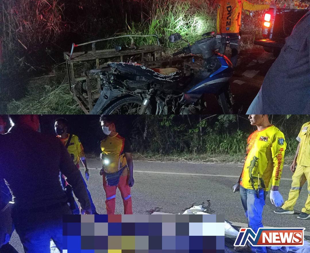 หนุ่มเมียนมาซิ่งรถจยย.ชนท้ายรถซาเล้งพ่วงข้างรถทับซ้ำ