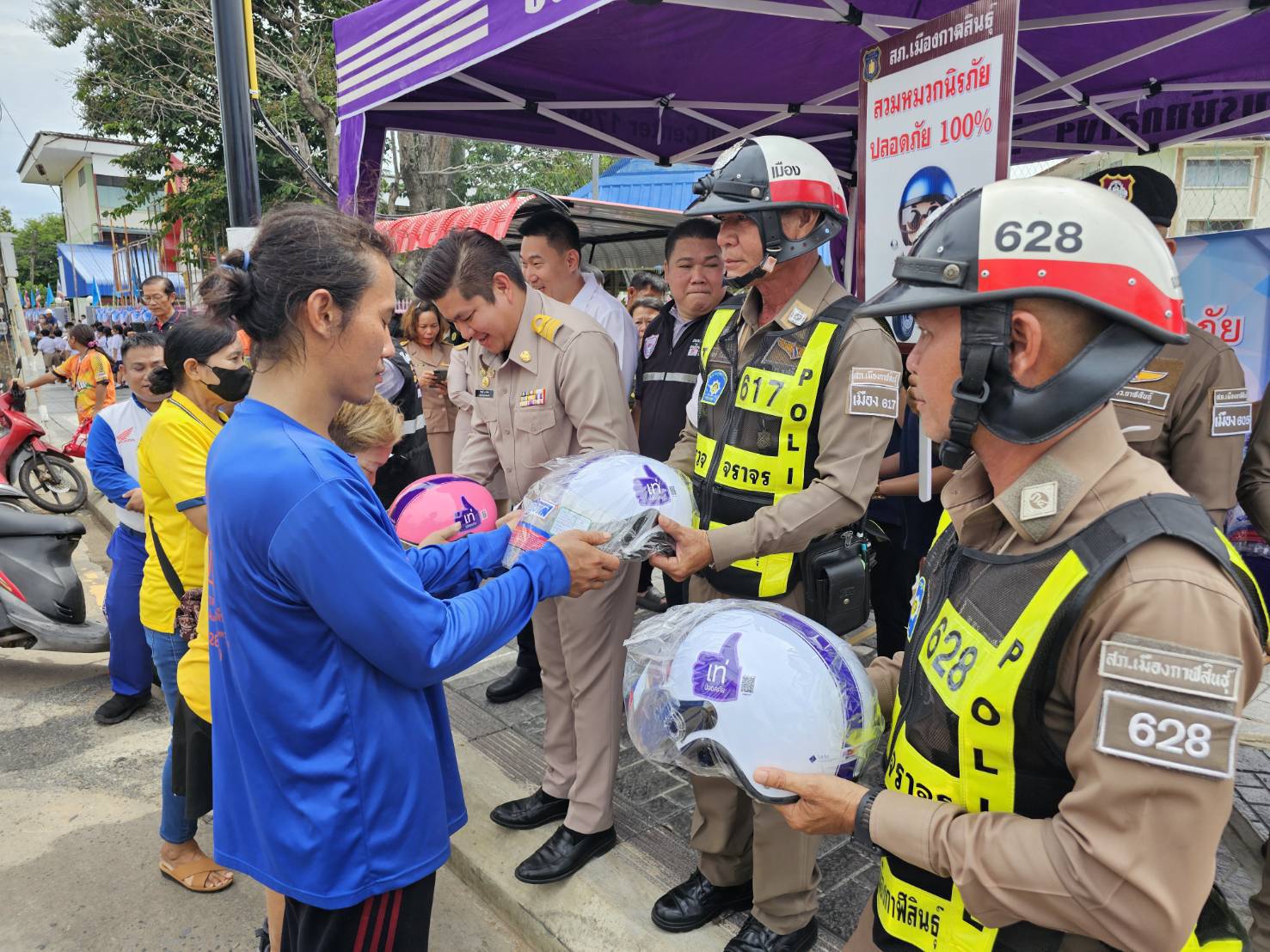 ตร.เมืองกาฬสินธุ์ร่วมภาคีเครือข่ายแจก หมวกกันน็อคฟรีรณรงค์สร้างวินัยจราจร