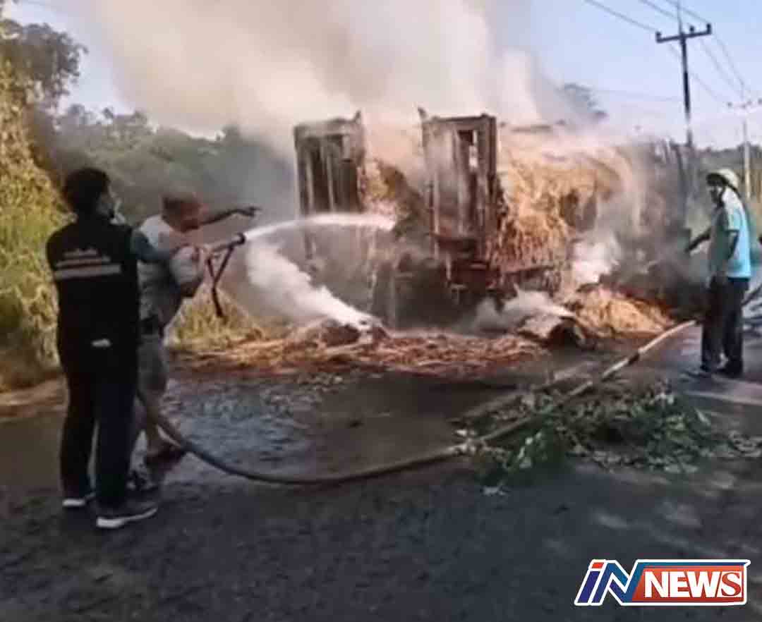 ไฟไหม้รถบรรทุกฟางหวิดวอดทั้งคัน