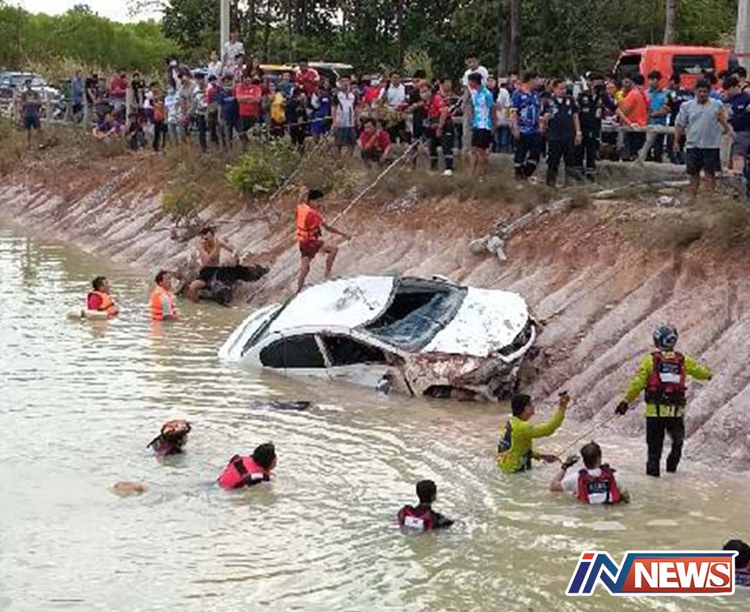 หนุ่มเบญจเพสควบเก๋งตกสระจมน้ำเสียชีวิต