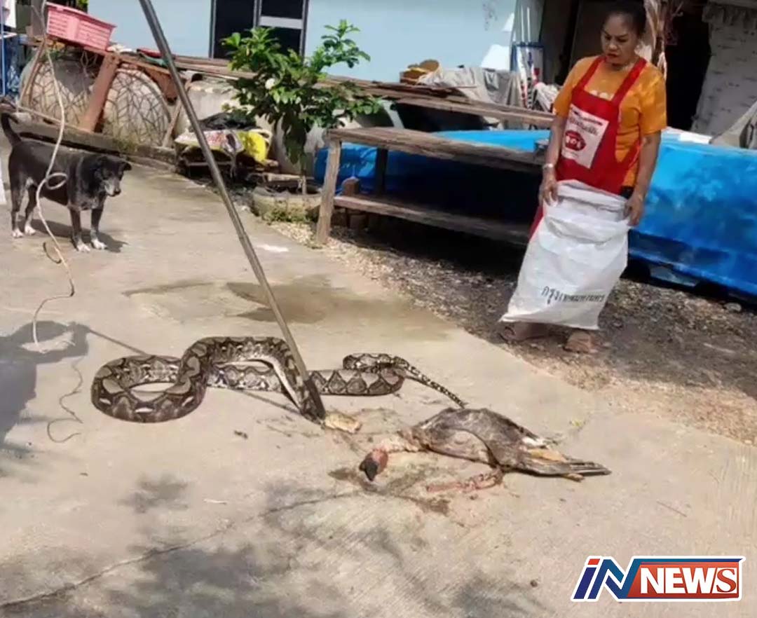 นาทีสยองงูเหลือมขย้อนลูกห่านขณะจนมุมจนท.กู้ภัย