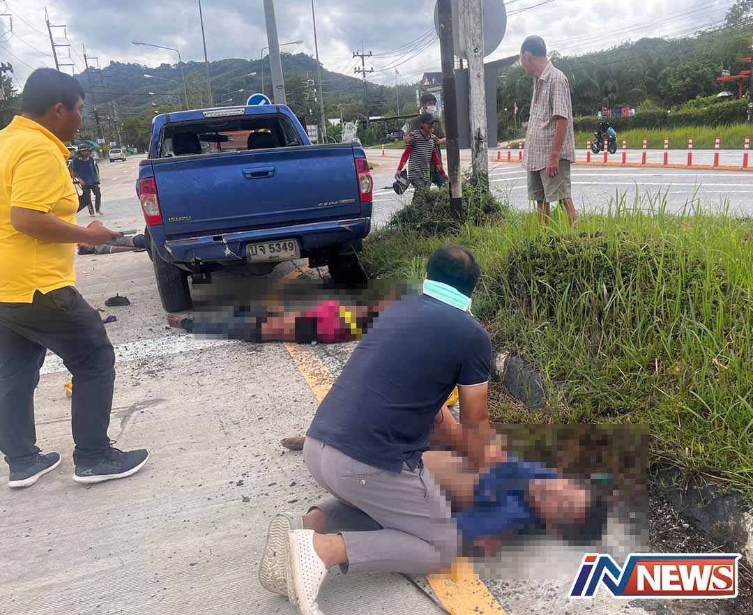 พังงา-ด่วนกระบะซิ่งชนคนงานซ่อมถนนตายคาที่2 สาหัส2 บริเวณสามแยกหน้าสภ.ตะกั่วทุ่ง