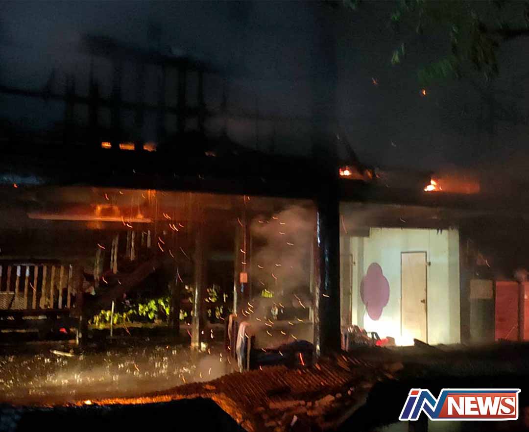 ราชบุรีเกิดเหตุเพลิงไหม้บ้านไม้กลางดึกวอนทั้งหลัง